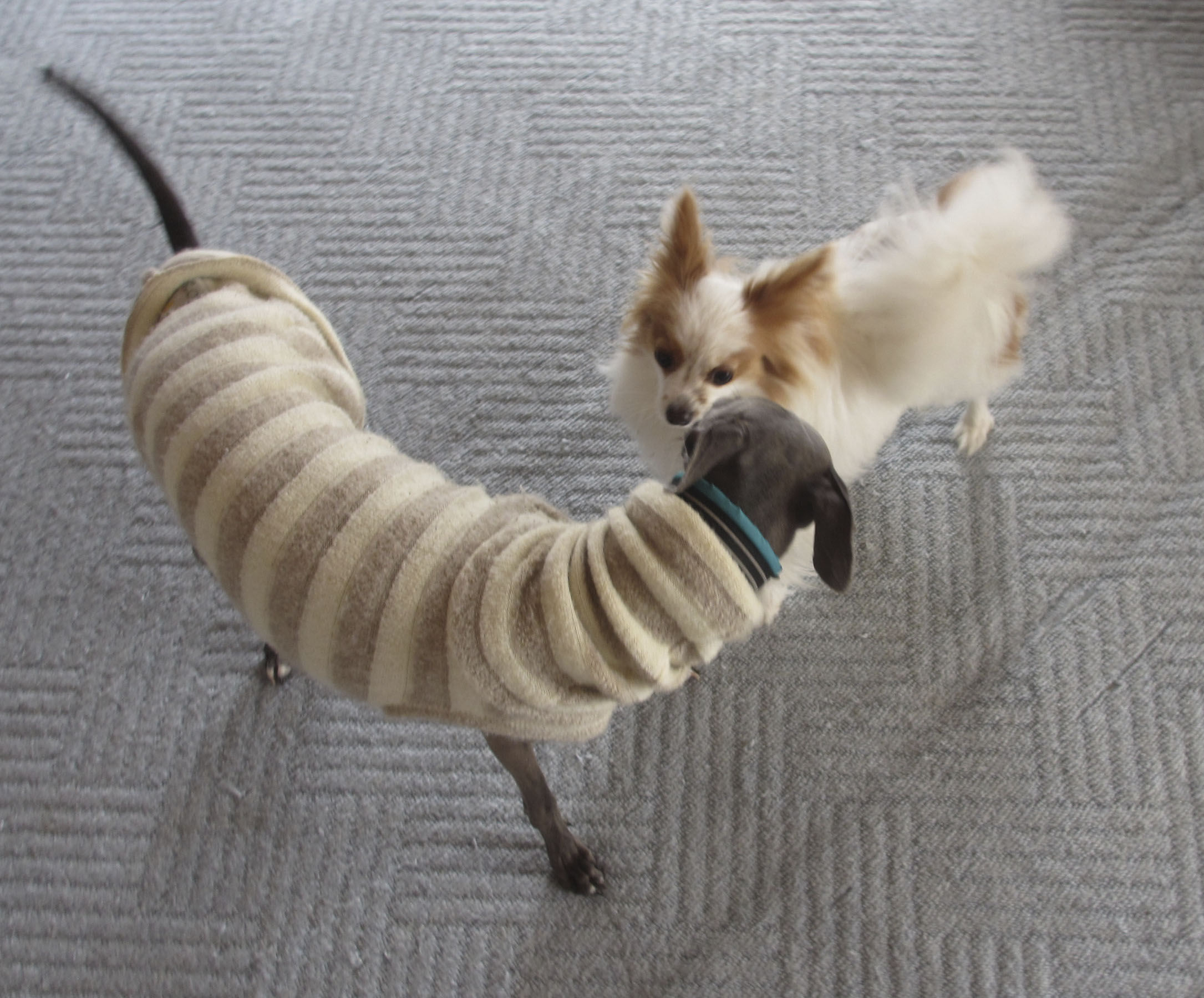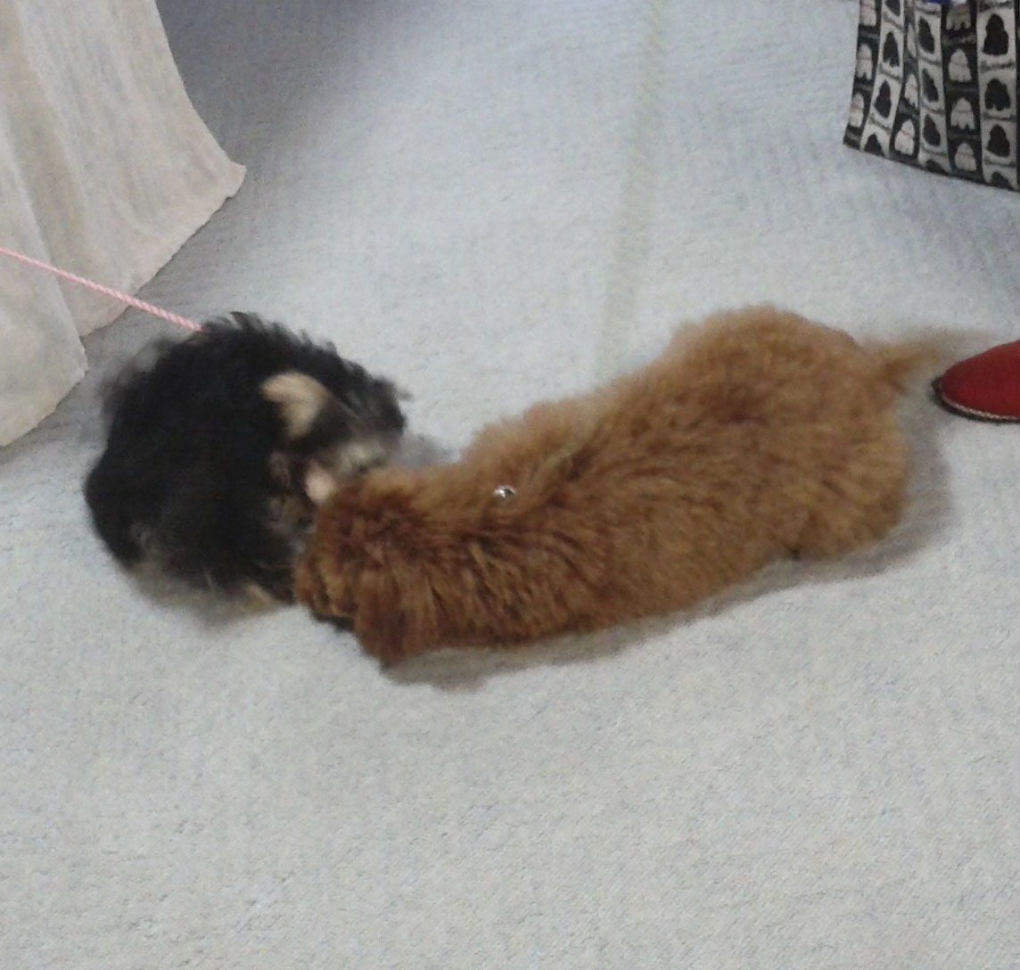 一緒に遊んでる時はどちらもモコモコで犬に見えないですね(笑)